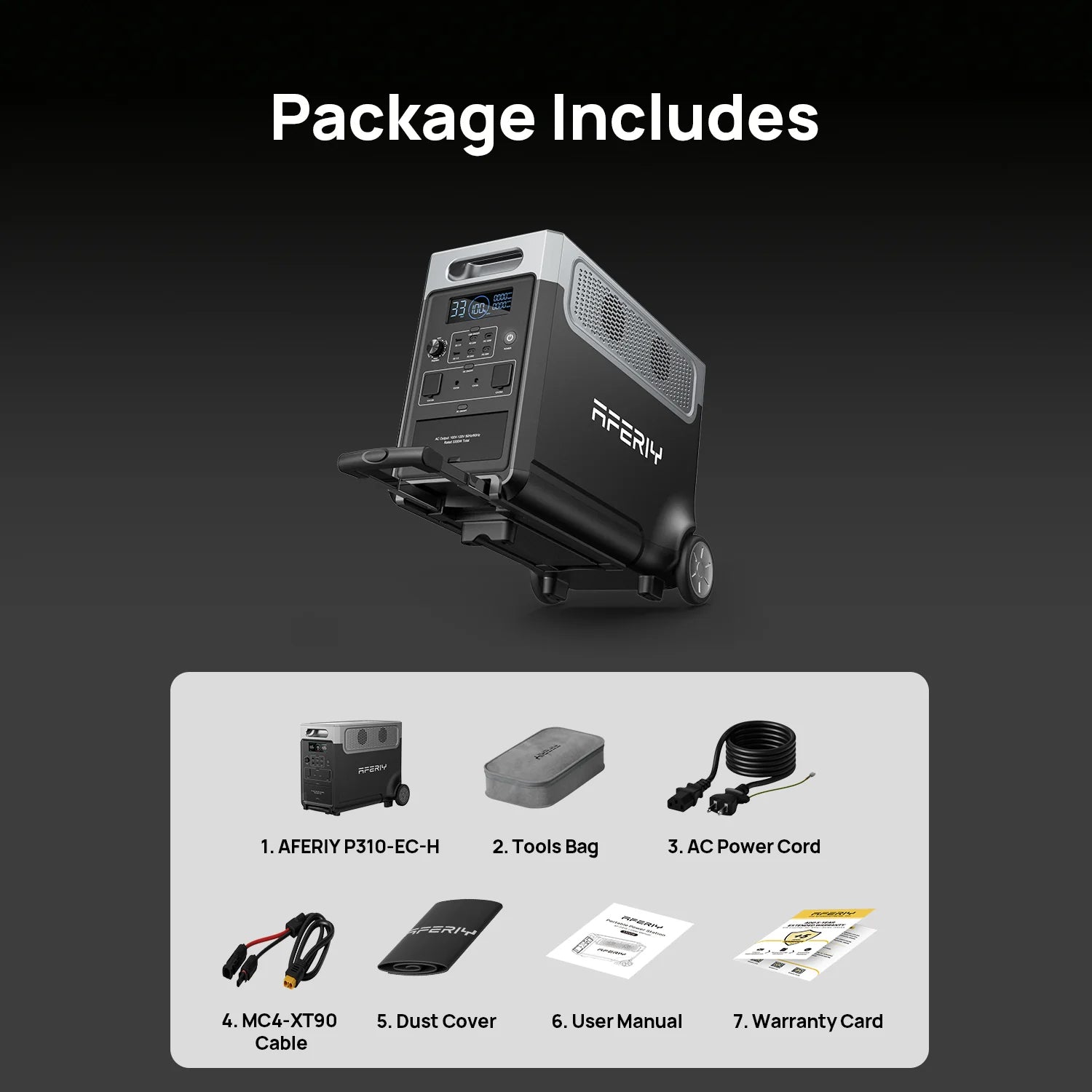 The AFERIY P310 offers a 3840Wh capacity (expandable to 11520Wh), 3600W pure sine wave output, EV-grade LiFePO4 battery, and reliable management system for long-lasting, consistent power at home or off-grid.